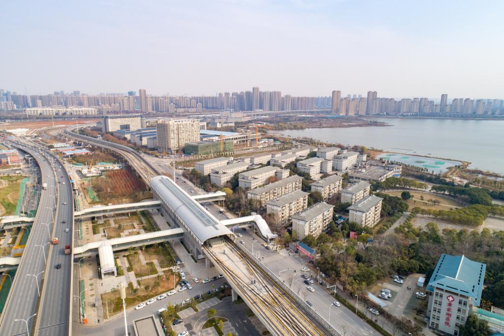 12月26日拍摄的武汉轨道交通16号线桂子湖站(无人机照片)。新华社发(伍志尊摄)