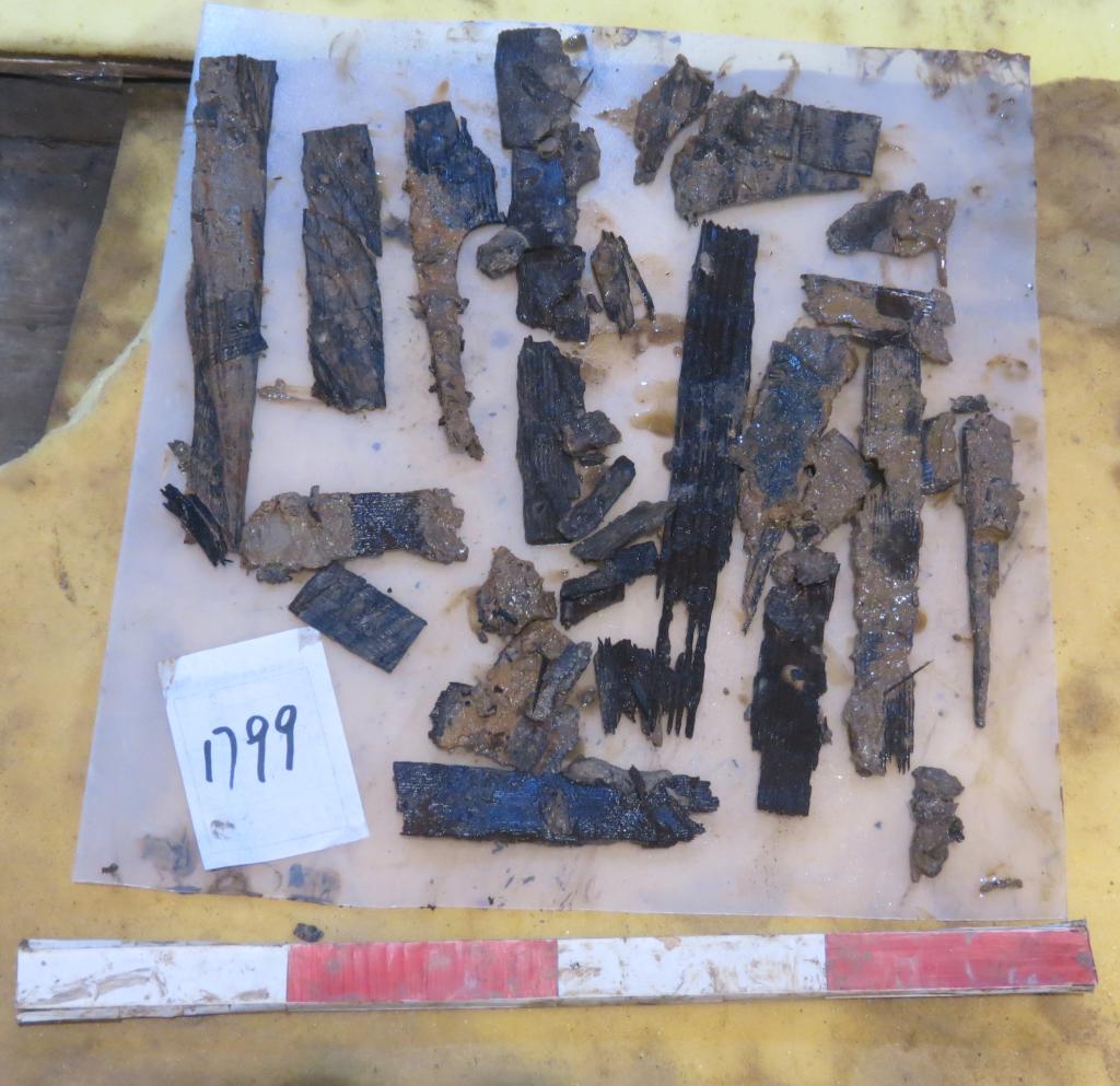 图为墓中刚出土的残牍。江西省文物考古研究院供图