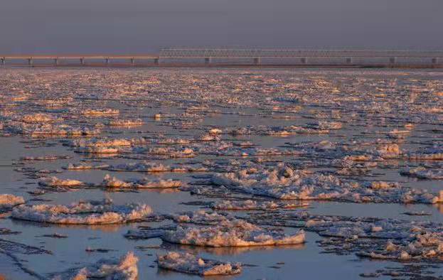 内蒙古鄂尔多斯市杭锦旗独贵塔拉镇黄河大桥流凌。(受访者供图)