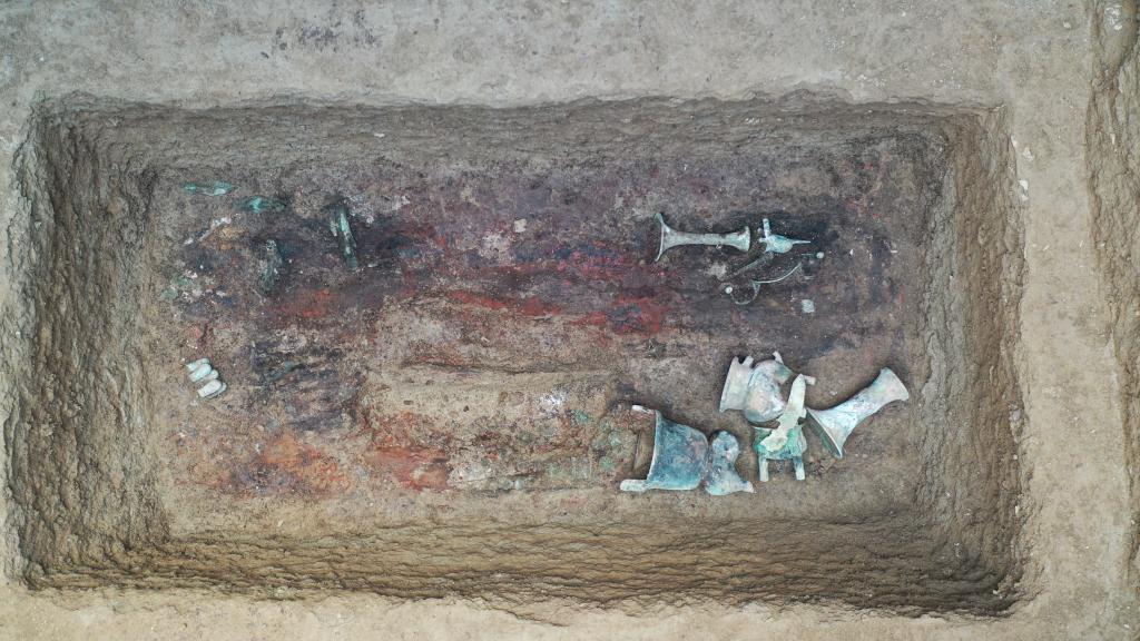 这是邵家棚遗址中的一座商代墓葬,其中出土了数量丰富的青铜器。图片由安阳市文物考古研究所提供