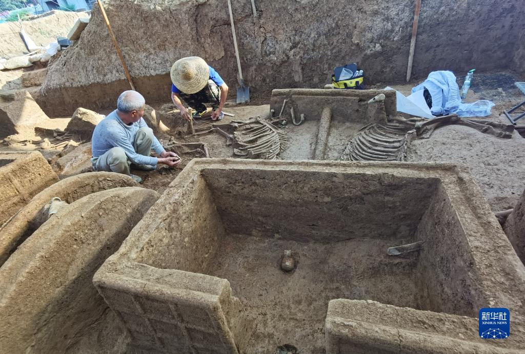 考古工作人员对邵家棚遗址的车马坑进行清理(资料照片)。新华社发(安阳市文物考古研究所供图)