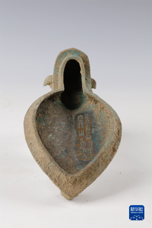 这是邵家棚遗址出土的青铜觥盖,内壁上有铭文12字(资料照片)。新华社发(安阳市文物考古研究所供图)
