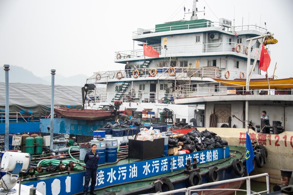 这是2021年11月3日拍摄的垃圾回收船。图片均为新华每日电讯记者伍志尊摄