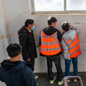 1月4日,永宁镇中心完小教职工协助住建部门查看教学楼受损情况。 新华社记者 陈欣波 摄