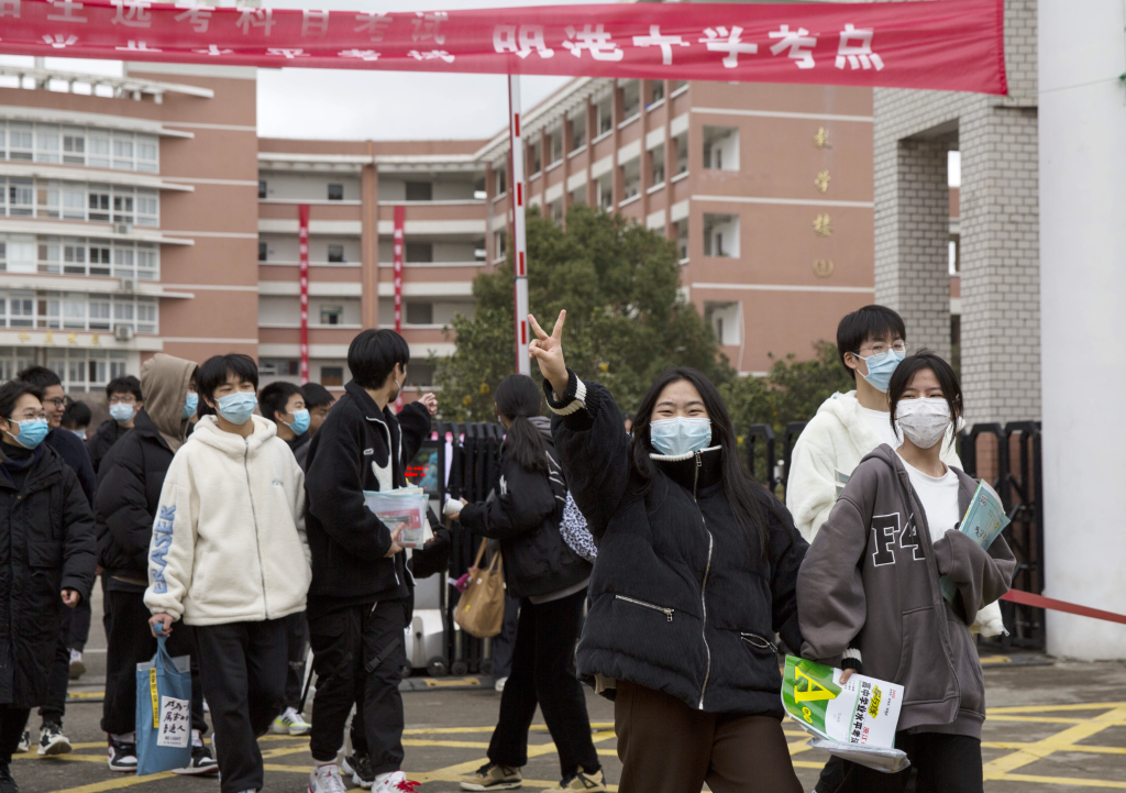 1月6日,在宁波市北仑区明港中学考点,考生在考试结束后走出考场。(受访者供图)