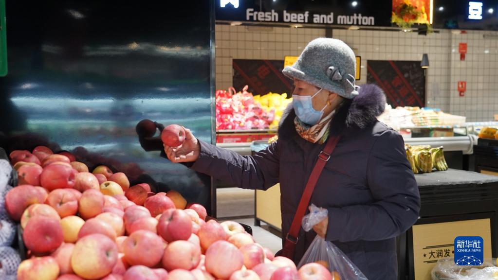 1月10日,在青海省海北藏族自治州门源回族自治县一家超市,当地群众在挑选苹果。新华社记者 李宁 摄