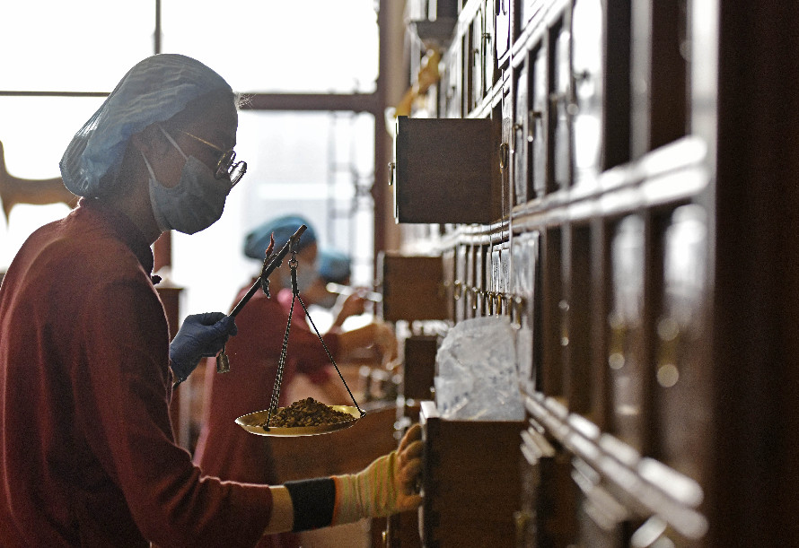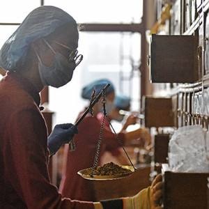 1月12日,药师在天津中医药大学第一附属医院进行中药调剂。