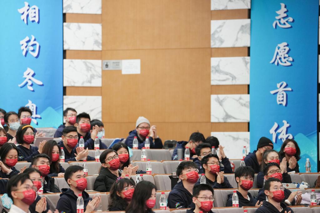 志愿者在动员大会和赛会志愿者场馆培训营开班仪式上。新华社记者 鞠焕宗 摄