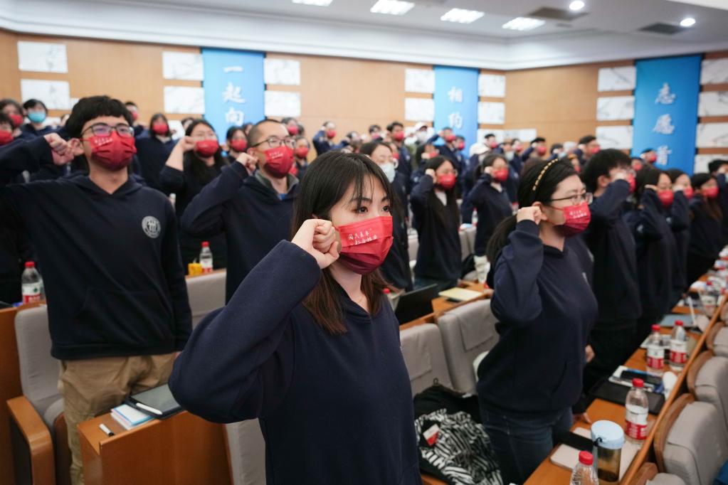 志愿者进行集体宣誓。新华社记者 鞠焕宗 摄