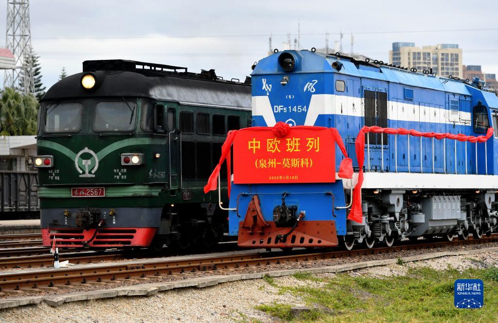 1月18日,中欧班列缓缓驶出泉州东站。新华社记者魏培全摄