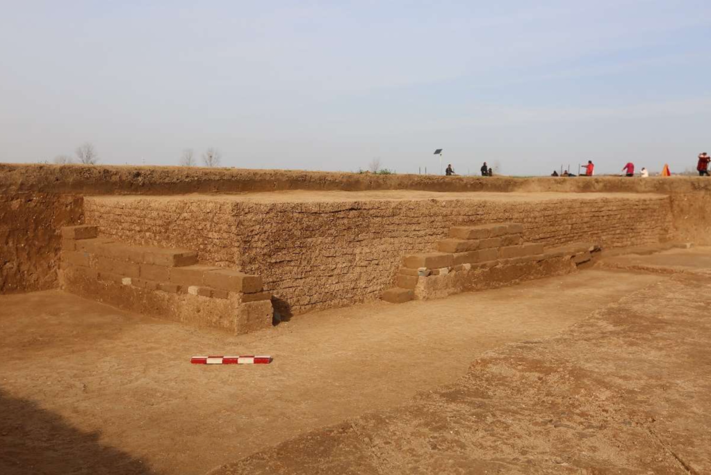 最新考古成果表明,显阳殿夯土殿基平面呈“凸”字形,东西约70米、南北约35米,台基南侧残高约1米,台基外侧残存有部分包砖和包砖沟槽等。