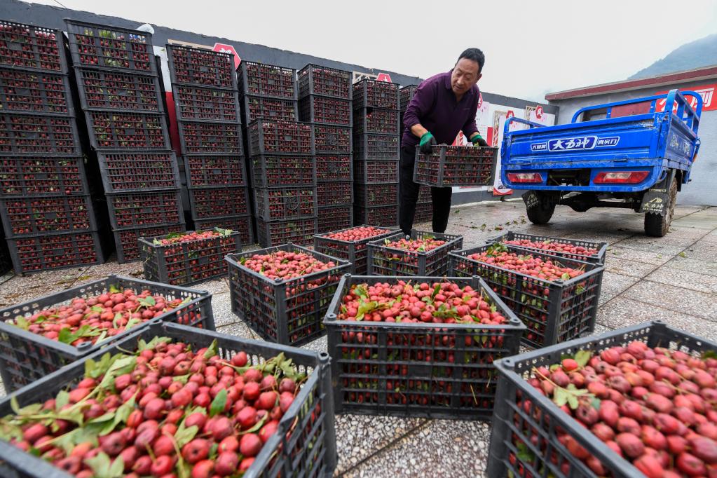 兴隆县一家合作社的农民在收获山楂。(兴隆县委宣传部供图)