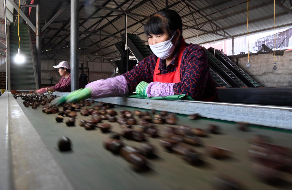 兴隆县一家合作社的农民在筛选板栗。(兴隆县委宣传部供图)