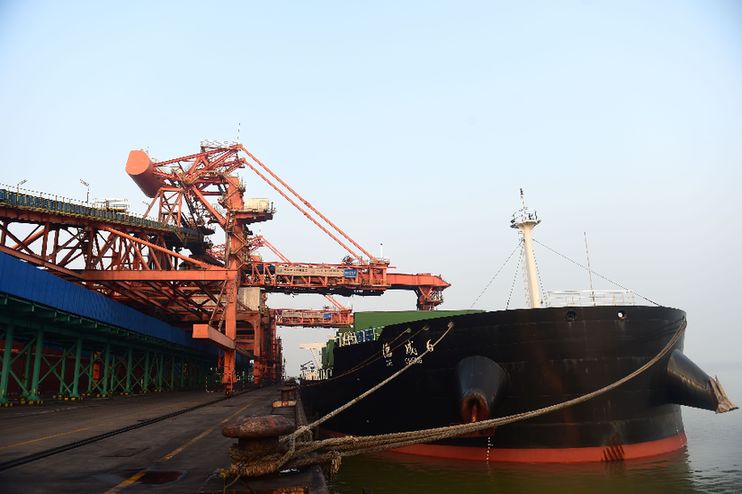 1月26日,船舶在黄骅港装载电煤。新华网发(傅新春 摄)