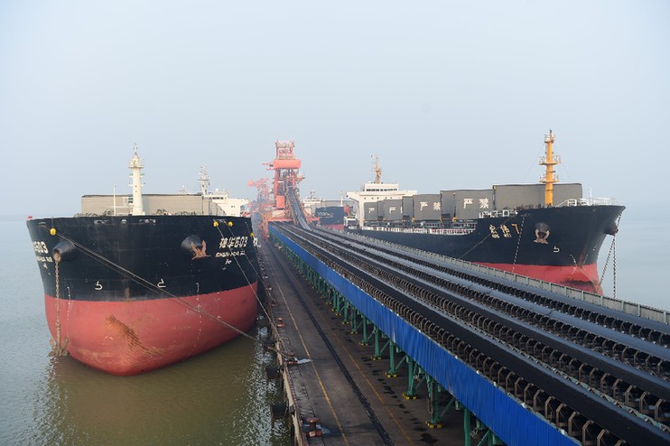 1月26日,船舶在黄骅港装载电煤。新华网发(傅新春 摄)