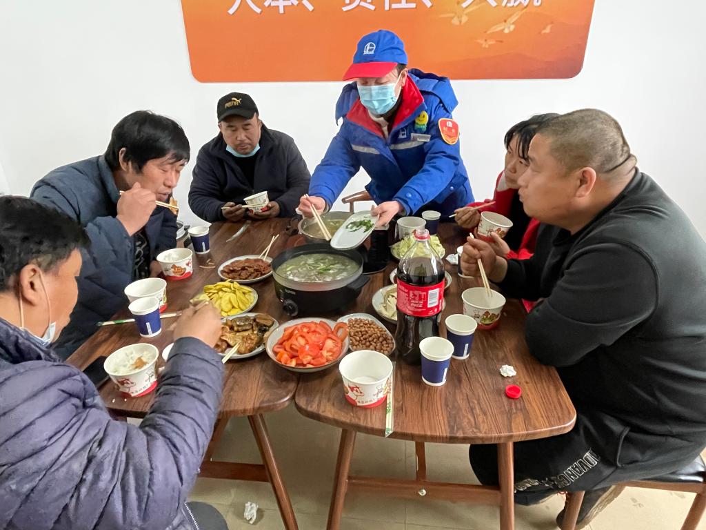 “希望来年大家的日子都能越过越红火。”司机们吃过团年饭,继续出发。