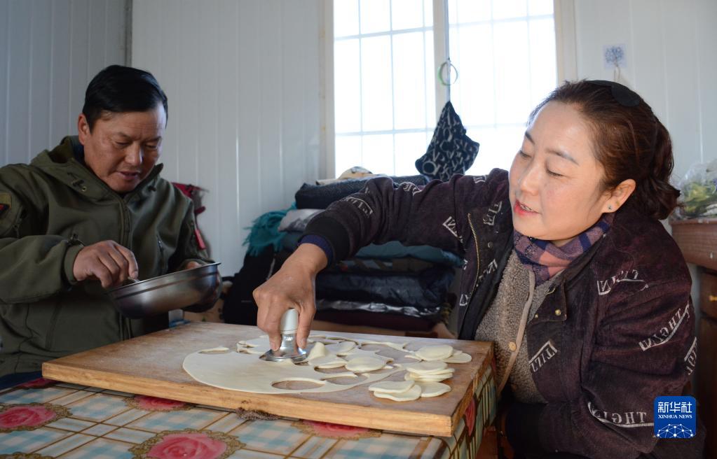 莆沙保(左)和妻子在包饺子(1月30日摄)。新华社记者 柳泽兴 摄