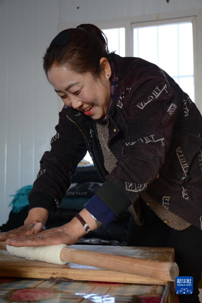 宋玉梅在擀面(1月30日摄)。新华社记者 柳泽兴 摄