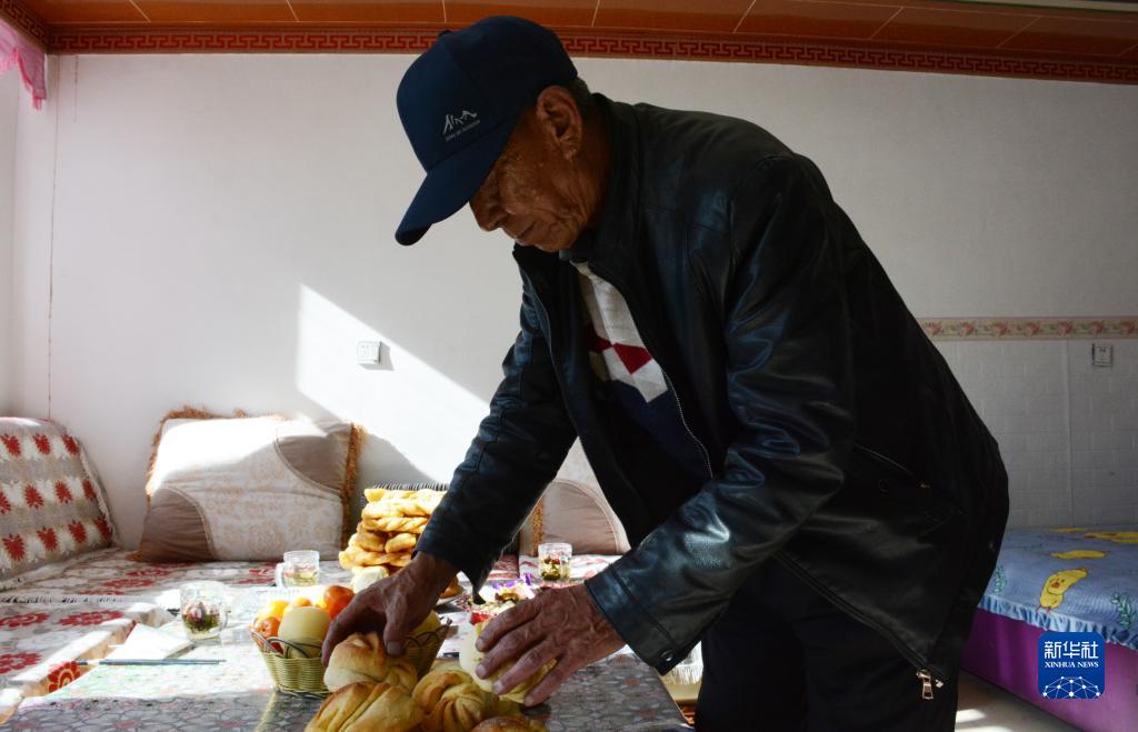 祁尼玛摆放招待客人的美食(1月30日摄)。新华社记者 柳泽兴 摄