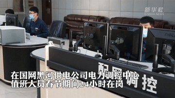 在黑龙江省黑河市,国家电网的电力工人们春节假期坚守岗位,守护着万家灯火。
