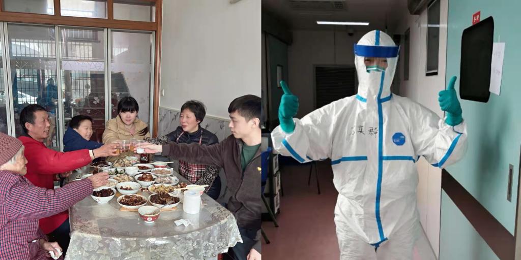 “我们平时吃饭基本是见缝插针,除夕也差不多,不同的是菜色丰富很多,除了有酒店加餐,还有一些上海同事家人特地送来的爱心年夜饭,八宝饭、熏鱼、蛋饺子……满口飘香、暖意满满。”王俊说。