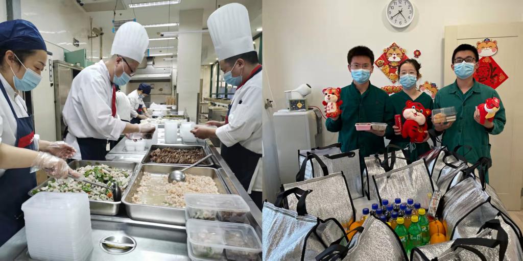 上海市公共卫生临床中心后勤餐饮部门为医护人员准备年夜饭。(上海市公共卫生临床中心供图)