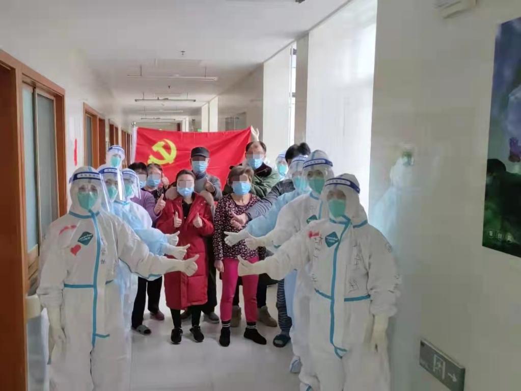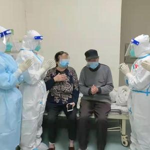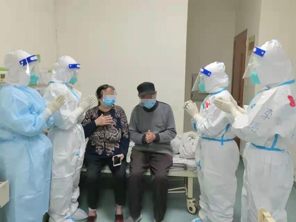 2月5日,2名治愈患者在出院前与医护人员告别。(西安市胸科医院供图)
