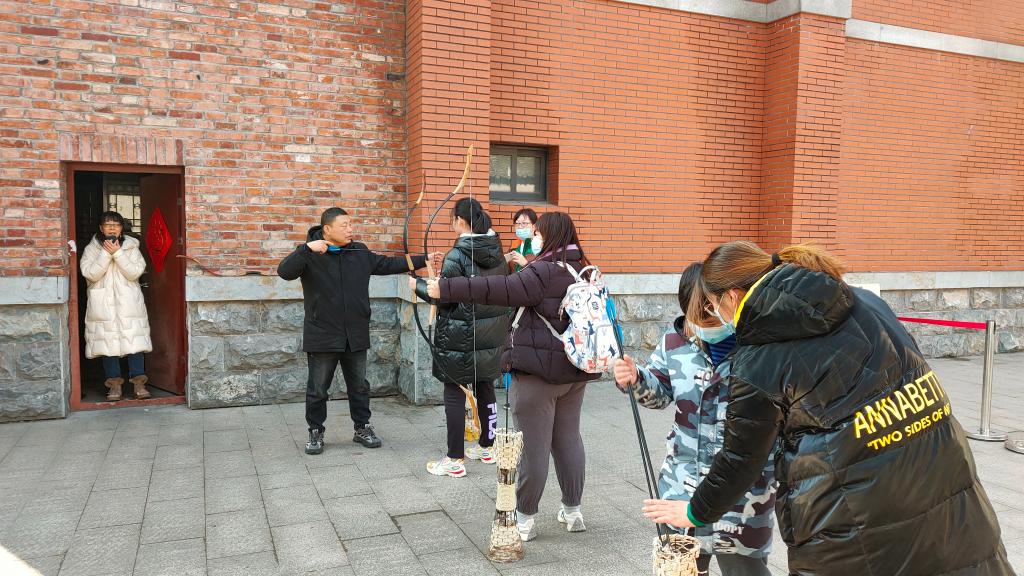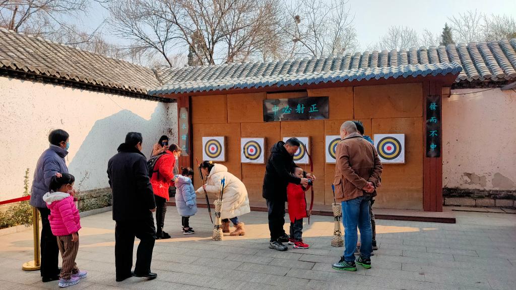 2月10日,山东省图书馆尼山书院,部分济南市民正在体验射艺活动。新华社记者萧海川摄