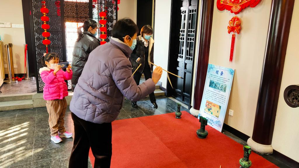 2月10日,部分济南市民在山东省图书馆尼山书院体验投壶。新华社记者萧海川摄。