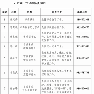 公示的部分亳州市委、市政府负责同志相关情况及联系方式