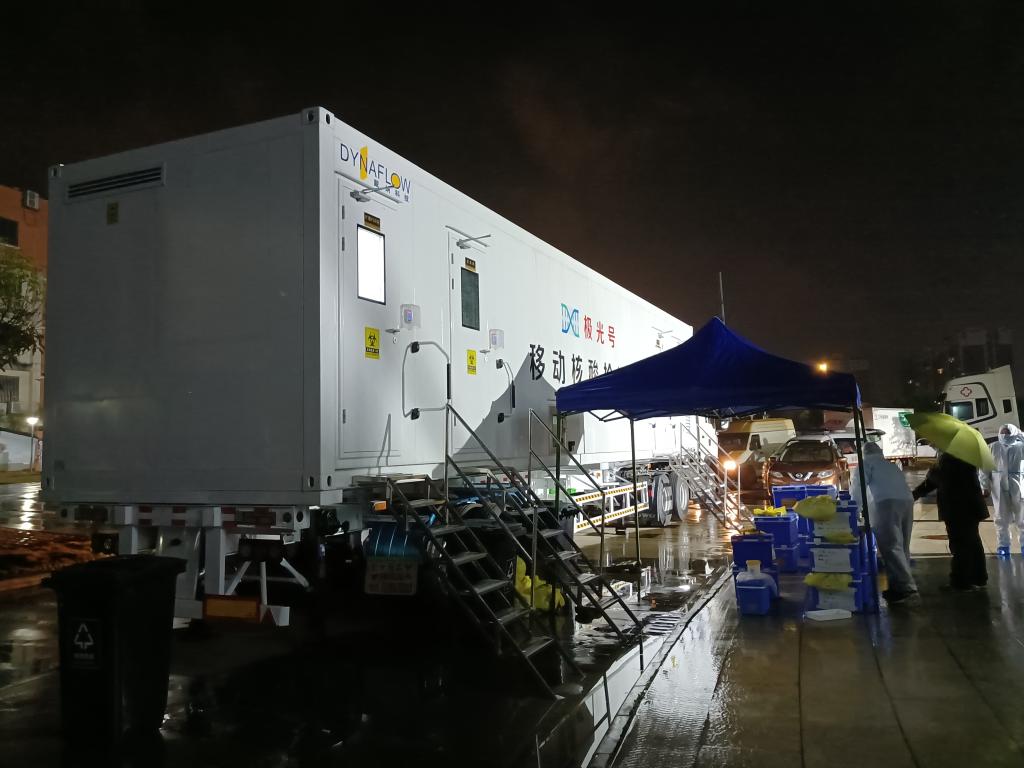 夜幕下的“极光号”移动核酸检测车。(广西江滨医院供图)