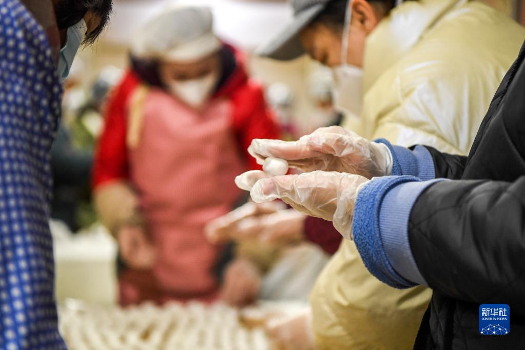 当给抗疫工作者送汤圆的提议在莲城社区的微信群中发出后,社区居民踊跃报名。650多公斤糯米等材料很快筹集到位。在将糯米浸泡、磨粉、脱水等一系列准备工序后,来自莲城社区的50多名居民在遵守疫情防控规定的前提下,开始制作手工汤圆。