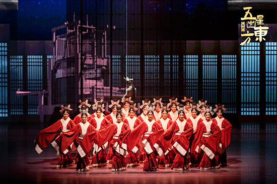 舞剧《五星出东方》由中共北京市委宣传部、中共新疆维吾尔自治区党委宣传部联合出品,北京演艺集团联合北京市援疆和田指挥部、和田地委宣传部共同制作,北京歌剧舞剧院、新疆新玉歌舞团演出,北京四海一家文化传播有限责任公司运营全国巡演,将于2月26-27日在山东省会大剧院、3月5-6日在佛山大剧院、3月12-13日在泉州大剧院、3月19-20日在深圳滨海艺术中心等地演出。(于婷婷)