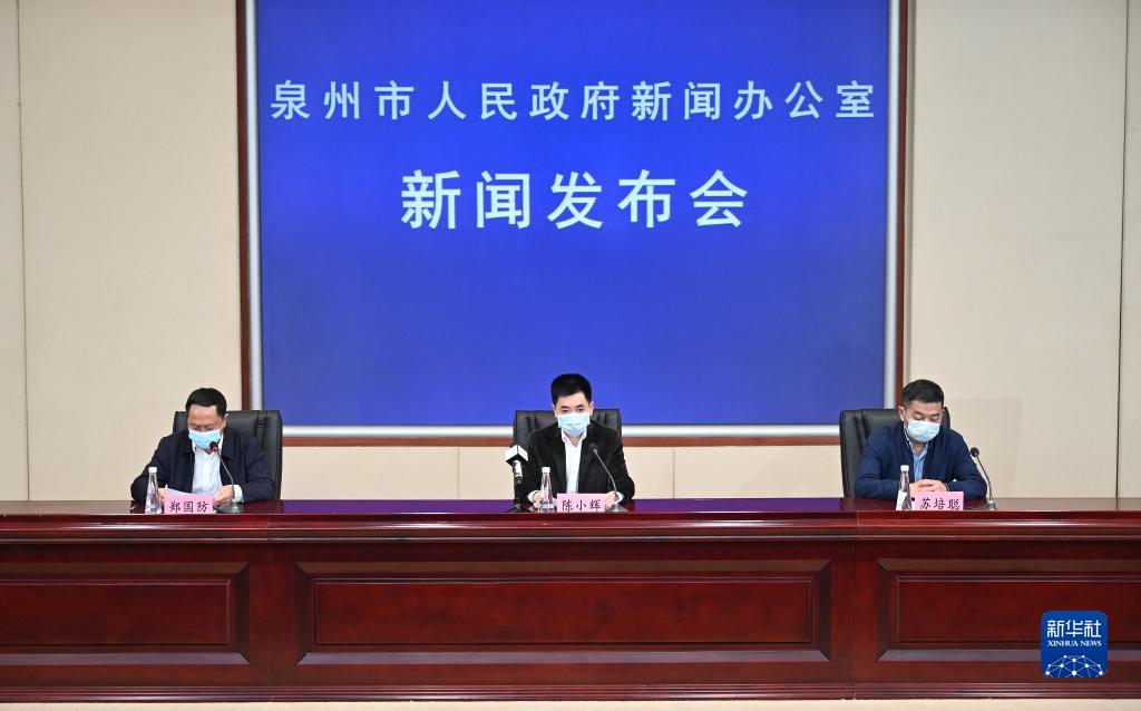 3月14日,泉州市人民政府新闻办公室举行新闻发布会,介绍疫情防控最新情况,并回答媒体提问。新华社发(周义摄)