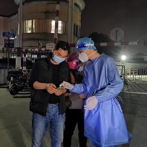从3月2日开始,李俊文就投身在抗疫工作中。连日来,由于不断重复讲话,李俊文的喉咙已经有些沙哑。他告诉记者,大家只要在岗位上,大多不会怎么喝水,“因为怕上厕所会耽误时间,而且上厕所要把防护服脱了,就不能再用了,有点浪费。”