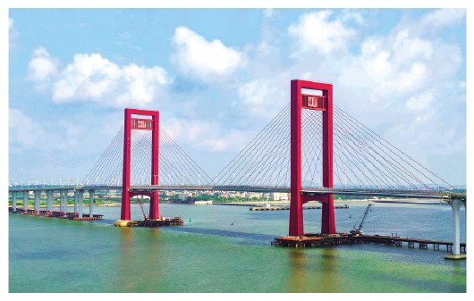2021年5月4日拍摄的湛江调顺跨海大桥(无人机照片)。大桥跨越湛江湾连接湛江市调顺岛及海东新区,对加快广东粤西片区经济发展发挥重要连通作用。新华社发(杨凝摄)