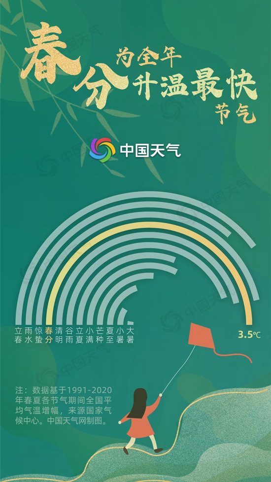 今天(3月20日),我国进入春分节气。“春分至,万物生”,此时我国大部地区加速回暖,进入气象学意义上的春天。“春分刮大风,利到四月中”,春分也是多风的时节。此时春风送暖暖得有多快?多变春风最常出现在哪里?中国天气网盘点节气升温大数据及多风城市排行榜,告诉你答案。