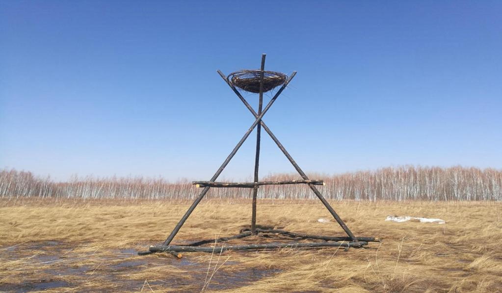 图为木制三脚架人工招引巢。(黑龙江省林业和草原局供图)
