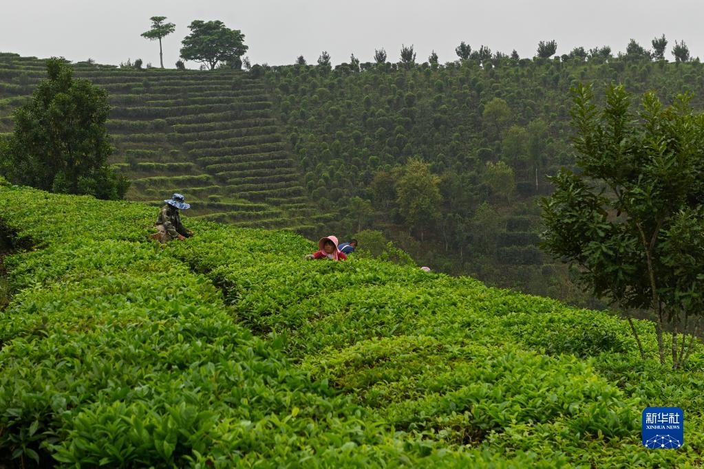 3月16日,茶农在景洪市大渡岗乡茶园森林化改造示范基地采摘茶叶。新华社记者 曹梦瑶 摄