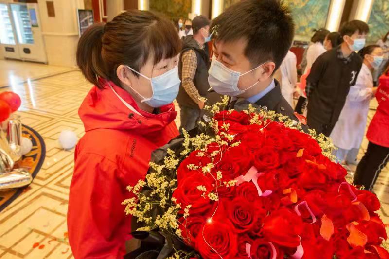 两年前,曹露作为营口援鄂医疗队一员,在隔离期刚满那天,被马明震浪漫求婚。“没想到会因为疫情,收获了那么多网友的祝福。这次,换我去疫情防控一线,守护我的爱人和家乡。”马明震说。