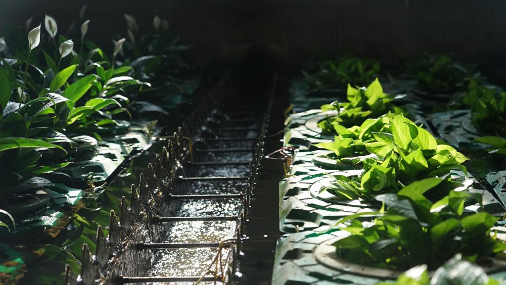 初春时分,在青海西宁市第一再生水厂车间内,潺潺流水自管道中流出,水池内的绿萝在“贪婪”地吸收水分,绿色的叶片在阳光照射下熠熠生辉。