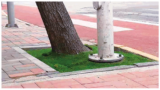 春风吹绿新芽,城中的树木已吐出新绿。但煞风景的杂物也不少:电线搭在树枝上、灯杆插到树坑里、盲道修到树根下,特别是在一些老城区,指示牌、邮箱、井盖等纷纷跟大树“抢地盘”。