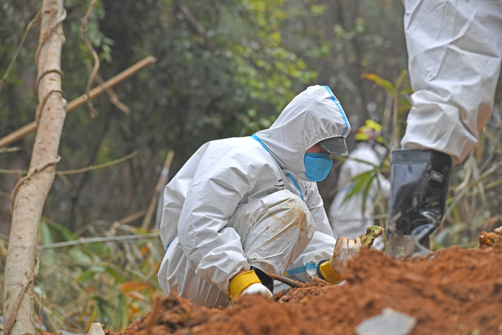 3月24日,搜救人员在事故核心现场继续进行搜索工作。 新华社记者陆波岸摄