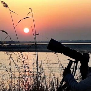 日落时分,岳昌鸿架好镜头正准备为鸟儿拍剪影。(受访者供图)