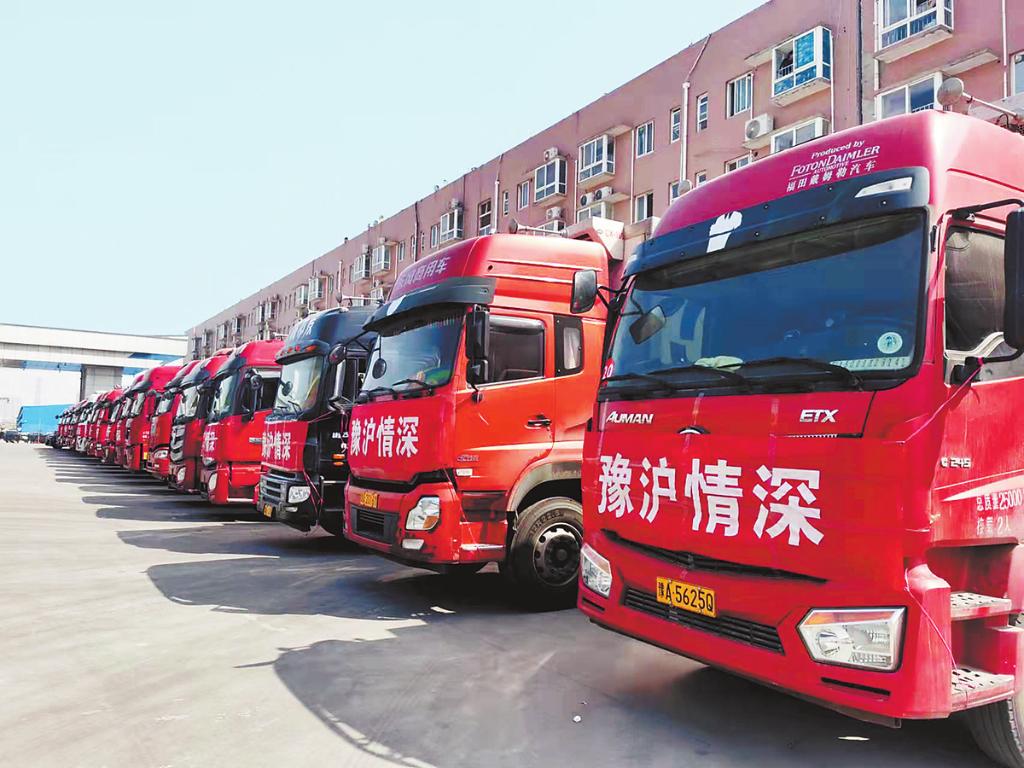 4月2日,20辆大货车载着河南援助上海的首批300吨蔬菜有序发车