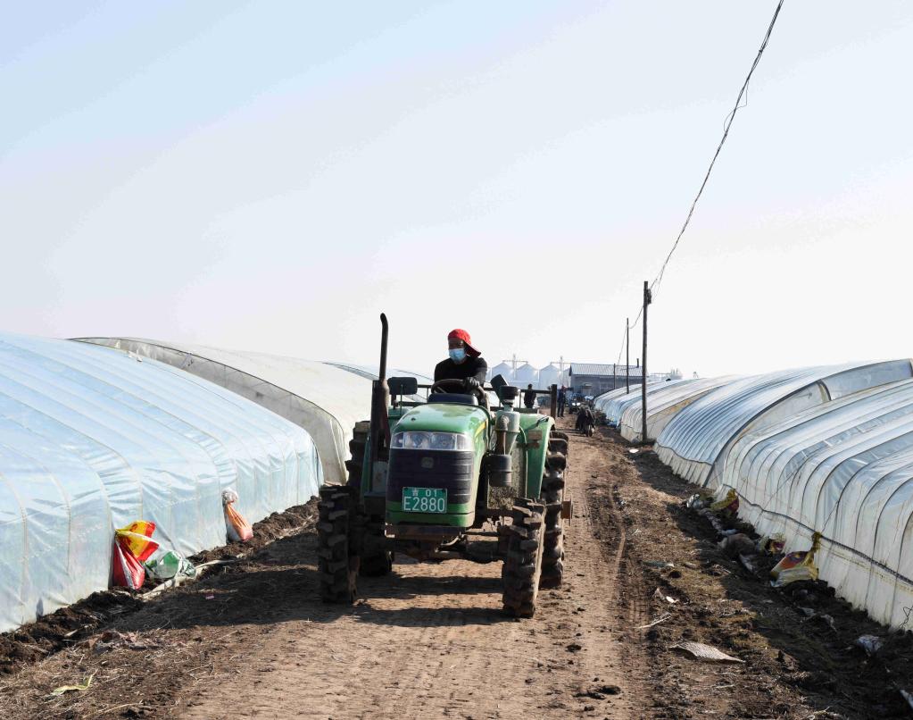 在志广乡五星村徐家街屯的一片大棚区,拖拉机“突突突”地来回穿梭,拉运农用物资;筛土、摆盘、覆土……村民们忙得热火朝天。