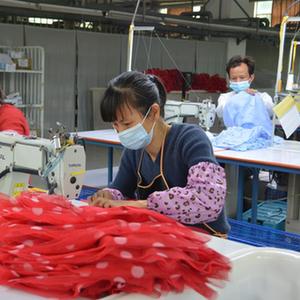 毛料入库、织片、洗水、烫衣、包装……走进福建泉州佘氏织造有限公司的生产车间,数十名工人正戴着口罩分工协作,一派繁忙的生产景象。看着这一场景,公司副总经理邹贤发不由感叹:“机器声一响,心里特别踏实。”