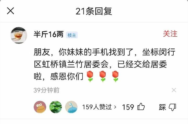 “朋友,你妹妹的手机找到了