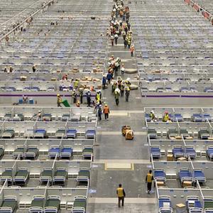 “援建工作工期短,任务重,我们主要负责的是场馆内的水、电、暖等项目。”李斌说,一天连轴转,坐下吃口饭,放松一下身体,都会感到浑身酸痛。