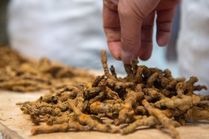在石柱黄连专业交易市场,工作人员分拣黄连。 新华社记者 唐奕 摄